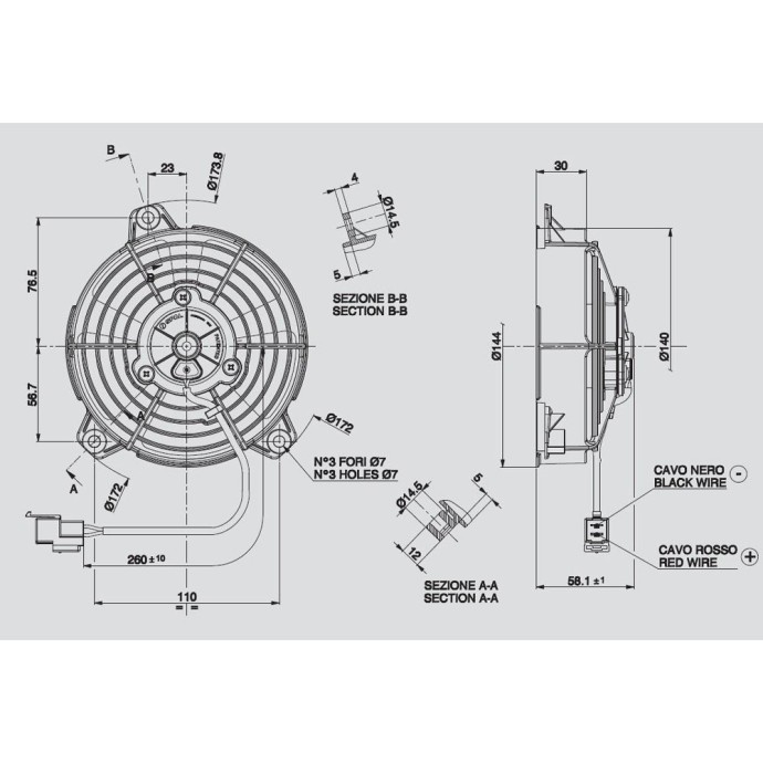Ανεμιστήρας 144mm 12V Spal Αναρροφήσεως VA37-A101-46A